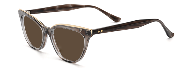 A mid-sized women's frame featuring a soft metal detail that perfectly accents the sweeping cat-eye silhouette.